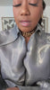 Relaxed, oversized long-sleeve draped blouse. Deep cowl-drape front neckline with soft waterfall folds Structured shirt-style collar with open plunge Full-length balloon sleeves