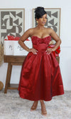 Petal Romance Midi Dress (Burgundy)