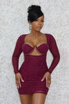 RHINESTONE WIRE BUST MESH MINI DRESS