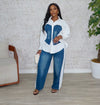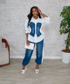 Denim contrast pants set